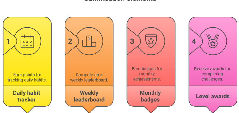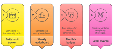 Through gamified activities like daily trackers, weekly leaderboards, monthly badges, and level awards—children learn while playing.