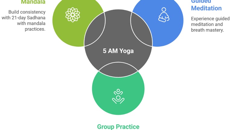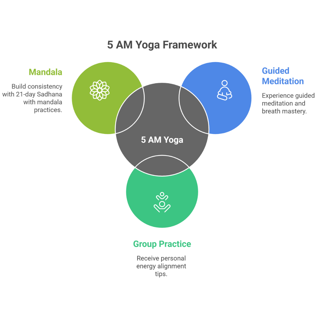 Yoga@5 is a daily yogic practice at 5am, designed to build consistency, clarity, and inner strength—starting with just one powerful habit.